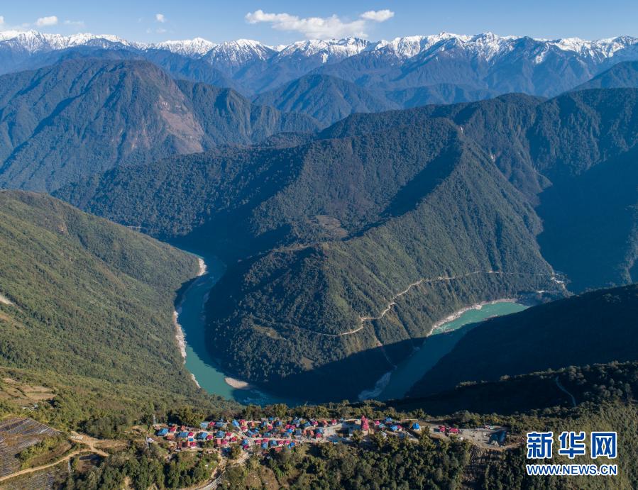西藏林芝市墨脫縣德興鄉(xiāng)巴登則村位于雅魯藏布江邊的一座山上(2月9日攝,無(wú)人機(jī)照片)。新華社記者 孫非 攝