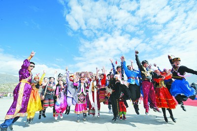 各民族代表歡聚在西藏拉薩布達拉宮廣場。新華社發(fā)