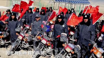 夜幕降臨高原,一天的訓練結束。隊員們騎著車從鄉(xiāng)里散去,出發(fā)前不忘再緊一緊車尾的國旗。一輪明月懸在喜馬拉雅山脈的群山上,照亮了守邊人的回家路。