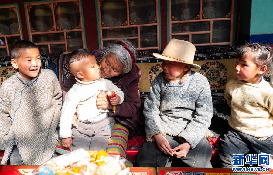 沖多(中)在家和孫子孫女們在一起(1月15日攝)。新華社記者 孫非 攝