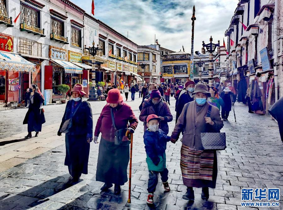 圖為八廓街上的群眾(2021年3月20日攝)。新華社記者李鍵 攝