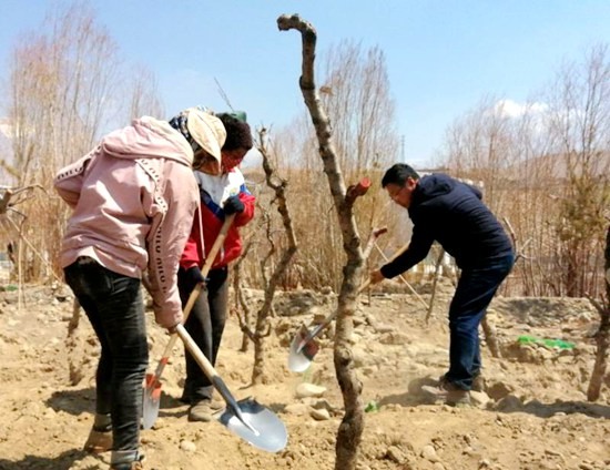 4月1日,西藏阿里地區(qū)普蘭縣的雙擁公園要比往常更熱鬧。當?shù)馗刹咳罕娒χ灾矎年兾鬟\來的紅葉李、桃樹、國槐、柳樹和薔薇。