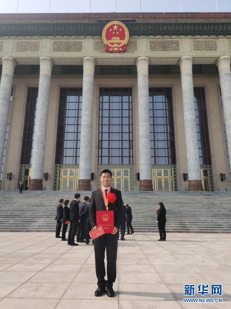 陳洪順榮獲全國脫貧攻堅(jiān)先進(jìn)個人稱號后,在北京人民大會堂前留影(2月25日攝)。新華社發(fā)