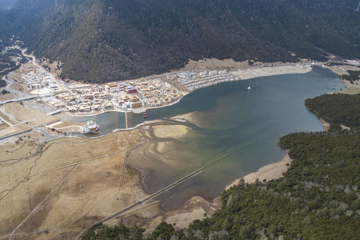 這是川藏公路旁的魯朗國(guó)際旅游小鎮(zhèn)風(fēng)光(4月2日攝,無(wú)人機(jī)照片)。新華社記者 孫非 攝