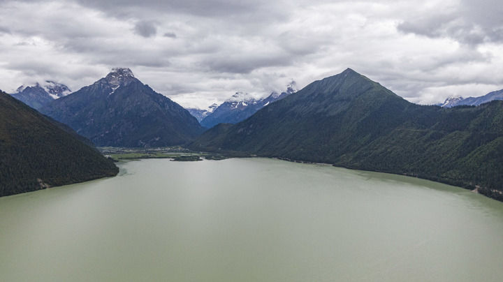 這是巴松措湖景色(2020年7月31日攝,無(wú)人機(jī)照片)。 新華社記者 孫非 攝