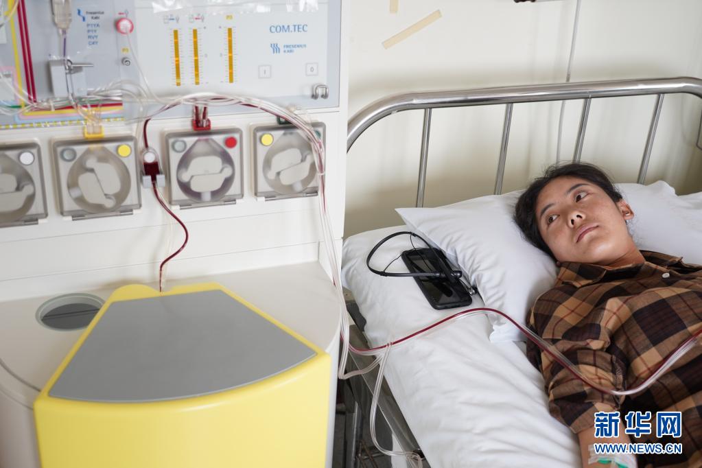 醫(yī)生摸著拉增的手和她聊天,造血干細胞整個采集時間需要近4個小時(資料圖片)。新華社記者 彭子洋 攝