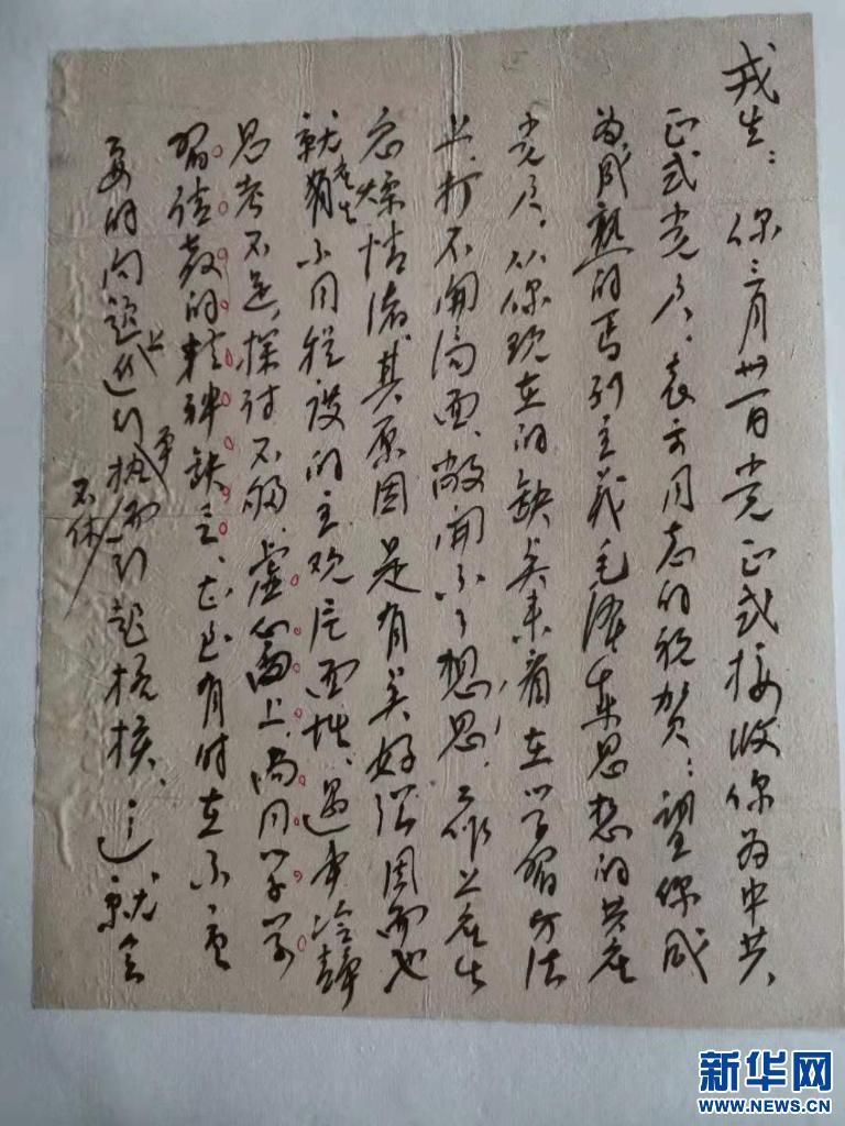 “戎生……我一生,只知為黨為人民,不知為私,你媽媽也是一樣。生出你們兄弟妹以來(lái),均寄托出去了,不能照顧你們周到,現(xiàn)在你們均長(zhǎng)成人了,也很努力求進(jìn)步,這就很好,對(duì)我在邊疆工作也是很大的鼓勵(lì)之一?!?/p>