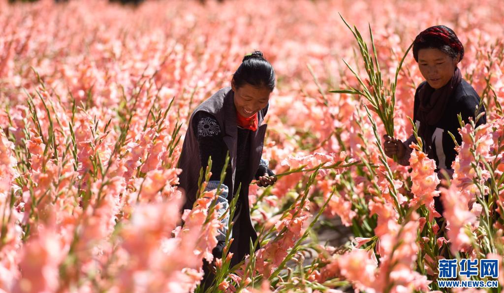 近年來,西藏拉薩市曲水縣才納鄉(xiāng)種植試驗基地試種薰衣草、馬鞭草、鼠尾草及各類藥材,成為拉薩市最大的“經(jīng)濟花園”。2017年10月7日,拉薩市曲水縣才納鄉(xiāng)村民旦增卓嘎(左)和貢桑(右)在基地里采摘作物。新華社記者 普布扎西 攝