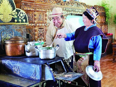 推開格桑曲珍家的院門,迎面映入眼簾的是坐北朝南、鑲嵌六扇大落地窗的藏式二層紅頂小樓,收拾得干凈整潔的院落透露出主人一家的勤勞。院子西邊的獨(dú)立衛(wèi)生間里,白底黃花的瓷磚鋪滿地面和墻面,太陽能熱水器、上下水衛(wèi)浴設(shè)施一應(yīng)俱全。院子?xùn)|南角上占地十余平方米的廚房里,配齊了現(xiàn)代化的抽油煙機(jī)和電子灶具。