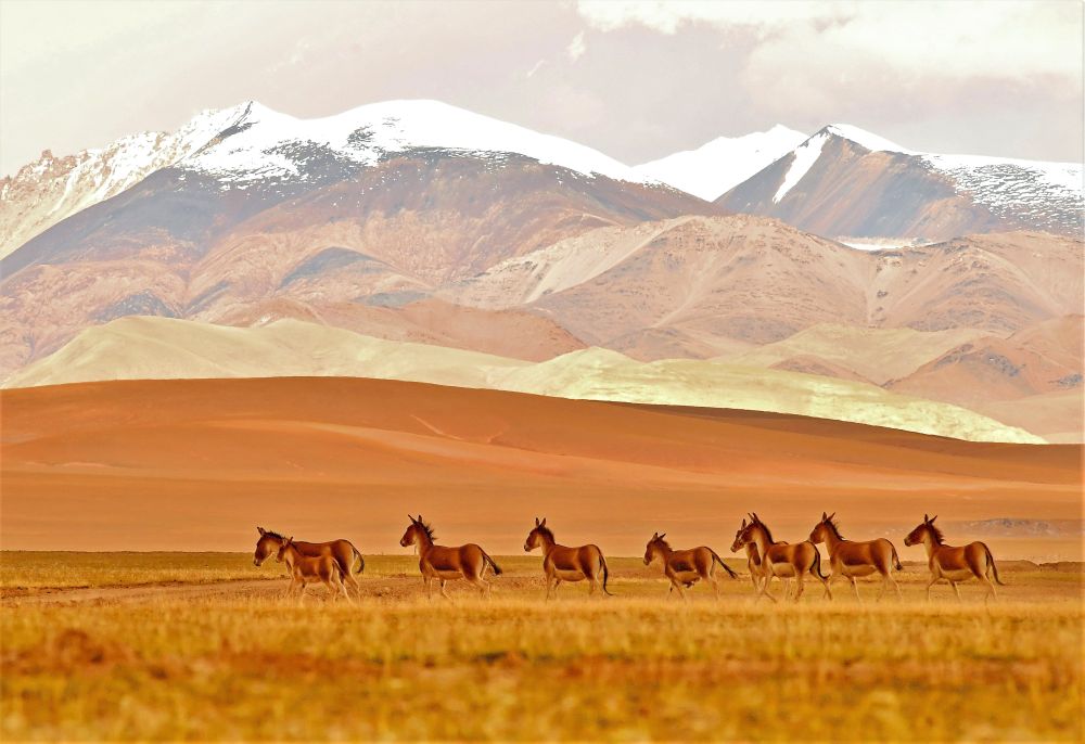 羌塘國(guó)家級(jí)自然保護(hù)區(qū)內(nèi)飛奔的藏野驢(2017年9月19日攝)。新華社記者 張汝鋒 攝