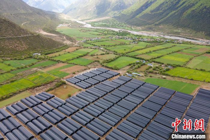 圖為航拍波密縣傾多鎮(zhèn)聯(lián)村共建產(chǎn)業(yè)示范園區(qū)的靈芝大棚。江飛波 攝