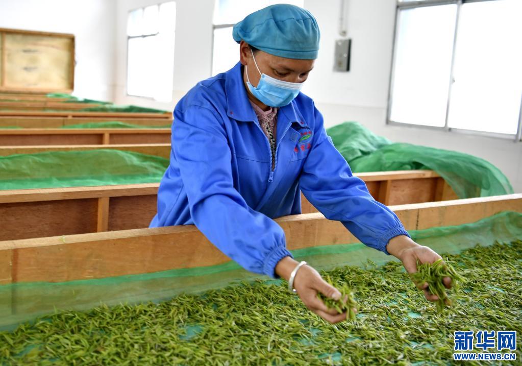 西藏易貢茶場(chǎng)加工車間的工人在進(jìn)行茶葉攤青(5月22日攝)。新華社記者 張汝鋒 攝