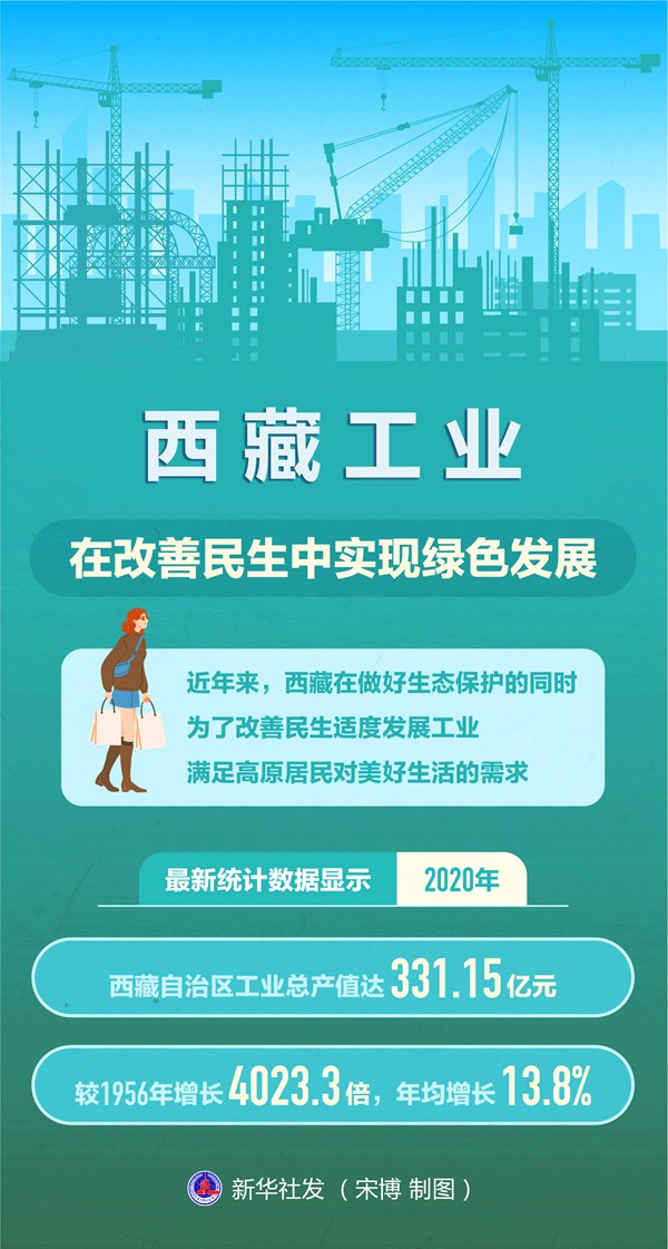 近年來,西藏在做好生態(tài)保護(hù)的同時,為了改善民生適度發(fā)展工業(yè),滿足高原居民對美好生活的需求。最新統(tǒng)計數(shù)據(jù)顯示,2020年,西藏自治區(qū)工業(yè)總產(chǎn)值達(dá)331.15億元,較1956年增長4023.3倍,年均增長13.8%。