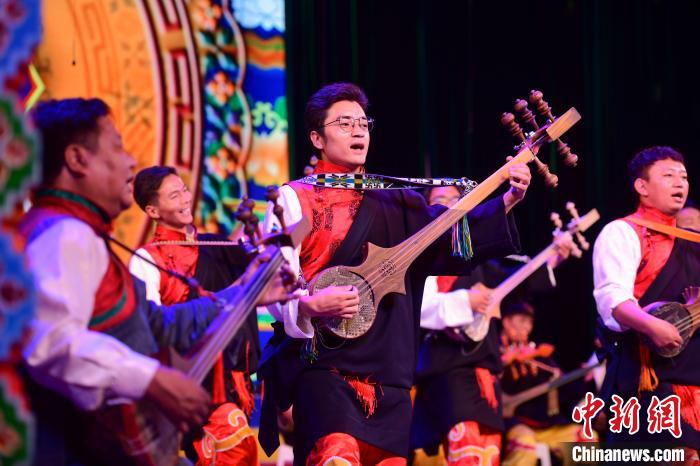 圖為西藏大學(xué)藝術(shù)學(xué)院音樂(lè)系帶來(lái)的扎念彈唱《普伊桑林貢巴》?!∝暩聛?lái)松 攝