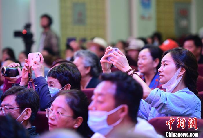 圖為場(chǎng)觀眾正在用手機(jī)拍攝西藏非遺演出?!∝暩聛?lái)松 攝
