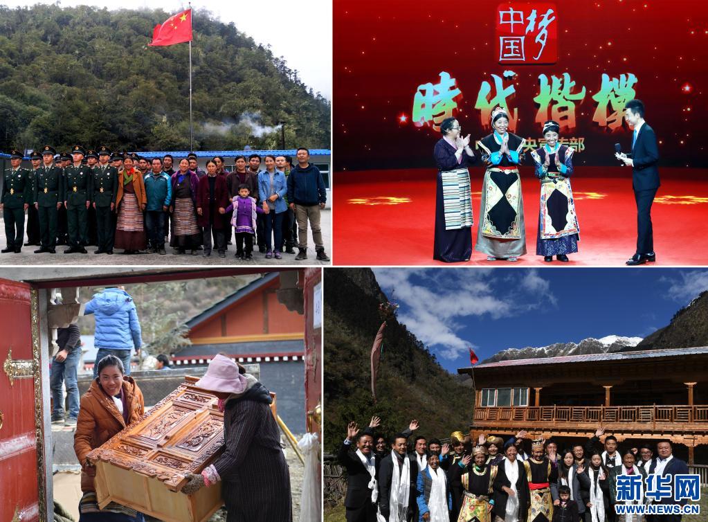 拼版照片:左上:山南市隆子縣玉麥鄉(xiāng)舉行升國旗儀式。新華社發(fā)
