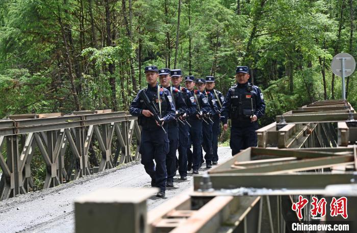 圖為移民管理警察步行進入巡邏區(qū)域。趙朗 攝