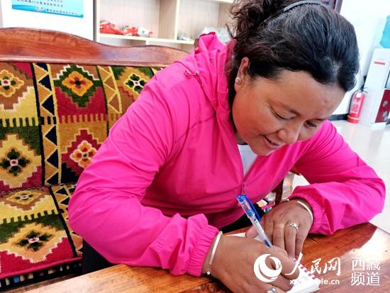 扎西梅朵在認(rèn)真寫(xiě)字。人民網(wǎng) 李海霞攝