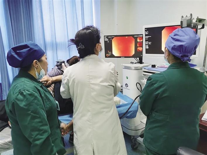 圖為內(nèi)鏡醫(yī)師體驗在AI輔助下胃鏡檢查。西藏自治區(qū)人民醫(yī)院供圖