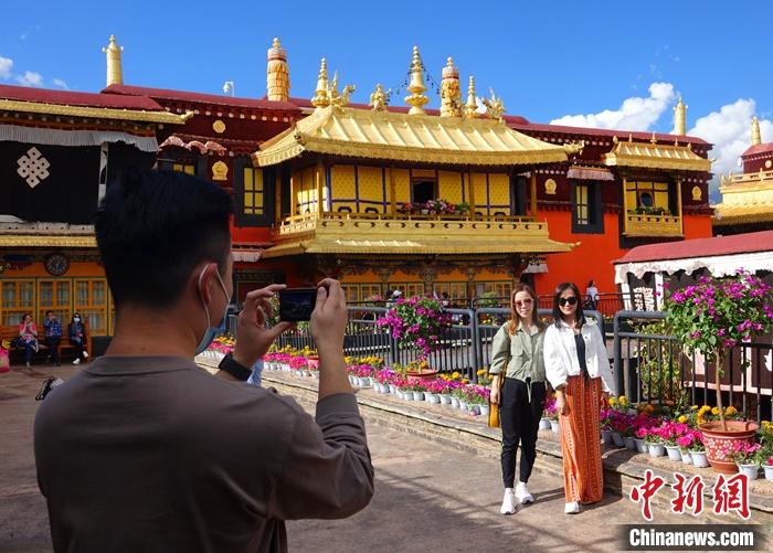 訪問團成員在拉薩參觀大昭寺。冉文娟 攝