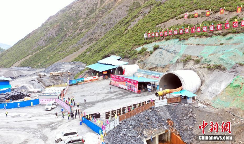 7月24日,航拍正在建設中的夏貢拉山隧道進口。穿越昌都市洛隆、邊壩兩縣和那曲市嘉黎縣的349國道控制性工程——夏貢拉山隧道項目建設正穩(wěn)步推進。(無人機照片) 中新社記者 劉忠俊 攝