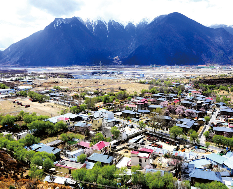 漫步在巴吉村寬闊平坦的村道上,一棟棟白墻紅頂的藏式小樓上五星紅旗迎風飄揚,向遠眺去,雨中云霧繚繞的遠山仿佛一幅山水畫。