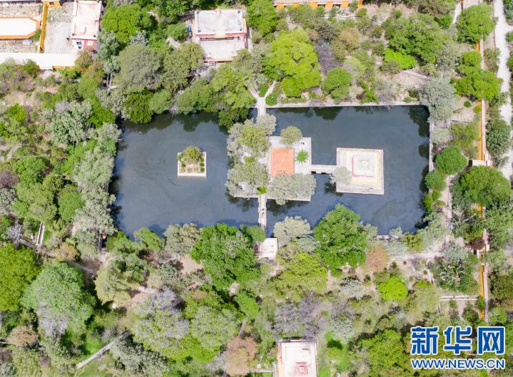 空中俯瞰羅布林卡一角(無(wú)人機(jī)圖片)。新華社記者 普布扎西 攝