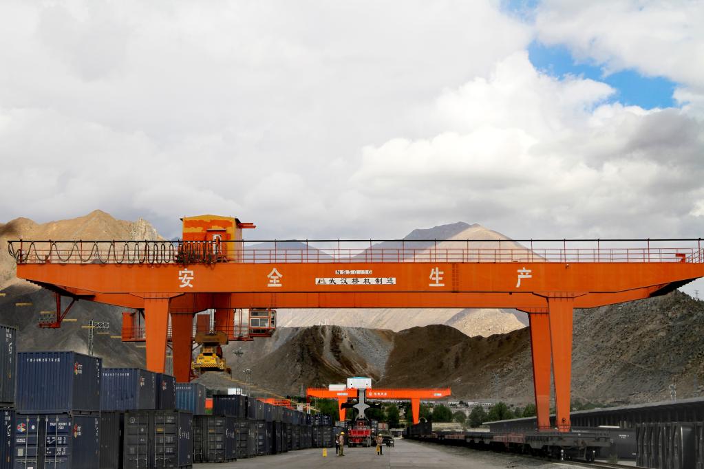 位于拉薩市堆龍德慶區(qū)乃瓊鎮(zhèn)的拉薩西站貨場(chǎng)(2021年7月29日)。新華社發(fā)(孫呈統(tǒng) 攝)