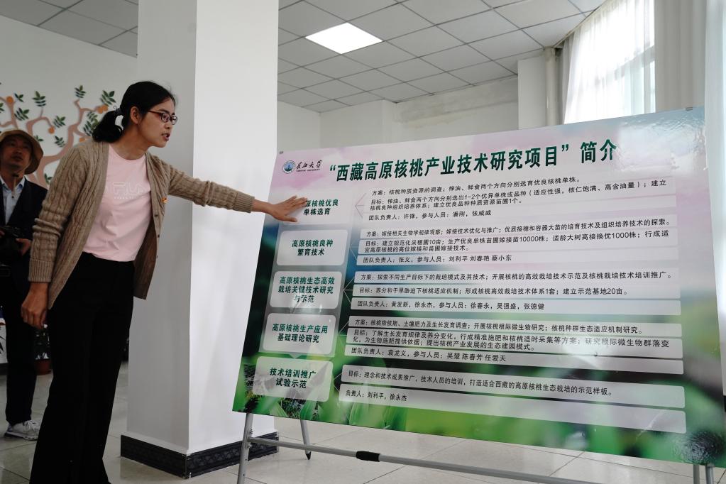 7月8日,長(zhǎng)江大學(xué)西藏高原核桃產(chǎn)業(yè)研究所在山南市加查縣加查鎮(zhèn)龍巴村揭牌,近20人研究團(tuán)隊(duì)將為當(dāng)?shù)睾颂耶a(chǎn)業(yè)提供優(yōu)良品種選育、嫁接等科技服務(wù)。長(zhǎng)江大學(xué)教師劉利平博士團(tuán)隊(duì)在加查工作4個(gè)多月,研究核桃資源分布、病蟲害等。