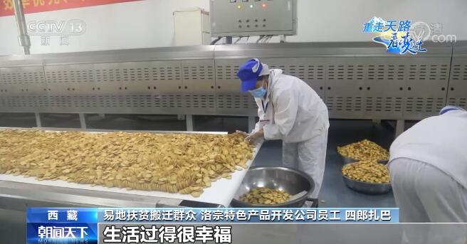 易地扶貧搬遷群眾 洛宗特色產(chǎn)品開發(fā)公司員工 四郎扎巴:我這個車間主要負(fù)責(zé)洗青稞、青稞剝皮,我妻子在泡菜車間工作,她每月2400元,我們倆加起來一年也有6萬多(元)收入,以前一年收入不到1萬(元),搬過來以后在這邊實現(xiàn)就業(yè),收入各方面都很穩(wěn)定,生活過得很幸福。