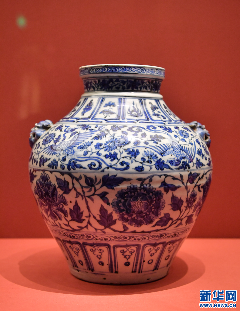 布達(dá)拉宮宮藏元代青花鳳穿牡丹紋罐(2021年1月26日攝)新華社記者 晉美多吉 攝