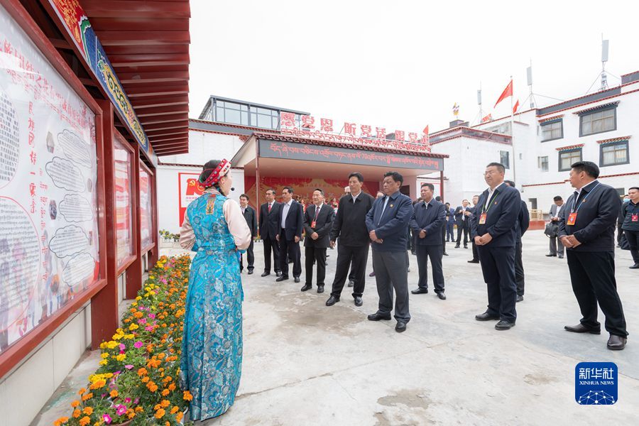 8月20日,中央代表團(tuán)山南、日喀則分團(tuán)帶著以習(xí)近平同志為核心的黨中央的深切關(guān)懷和全國(guó)人民的深情祝福,分別看望慰問(wèn)當(dāng)?shù)馗髯甯鹘绺刹咳罕?。這是全國(guó)人大常委會(huì)副委員長(zhǎng)、中央代表團(tuán)副團(tuán)長(zhǎng)白瑪赤林率日喀則分團(tuán)來(lái)到日喀則桑珠孜區(qū)城北街道辦事處江洛康薩社區(qū),視察民族團(tuán)結(jié)創(chuàng)建和新時(shí)代文明實(shí)踐中心建設(shè)工作情況。新華社記者 翟健嵐 攝