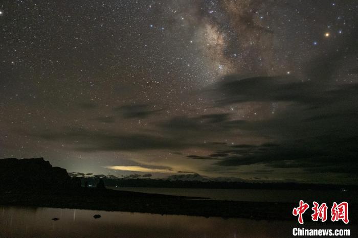 圖為8月26日晚,納木錯北岸湖邊的星空?!〗w波 攝