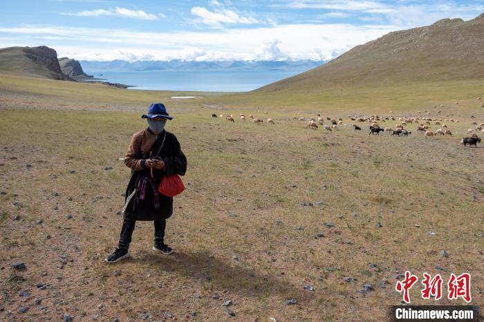 37歲的土桑是西藏那曲班戈縣青龍鄉(xiāng)嘎雄村的牧民,8月,他和同村另兩位牧民負責(zé)照看村里的羊群,在美麗的納木錯北岸湖邊放牧。