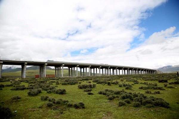 那拉高速段上的橋梁。圖片由西藏自治區(qū)交通運(yùn)輸廳提供