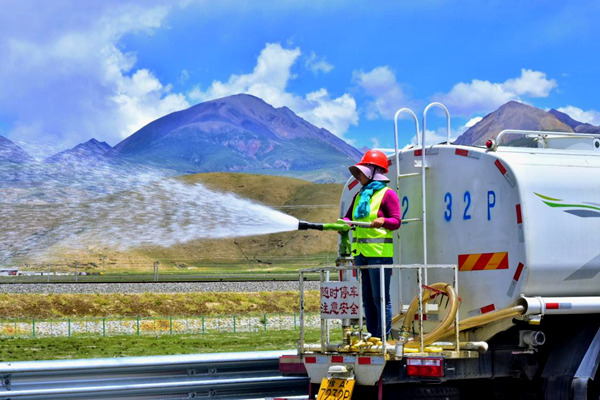 在惡劣條件下,是如何打造的?中國(guó)中鐵那羊高速四分部項(xiàng)目經(jīng)理陳永豐介紹:“都是在草甸恢復(fù)基礎(chǔ)上進(jìn)行的。剝離的草甸堆放在沿線,覆以遮陽(yáng)網(wǎng),定時(shí)澆水養(yǎng)護(hù)。路基建好后,將其復(fù)植至邊坡等地。打好基礎(chǔ)后,選用了更適應(yīng)高原環(huán)境的鄉(xiāng)土草(花)種。”
