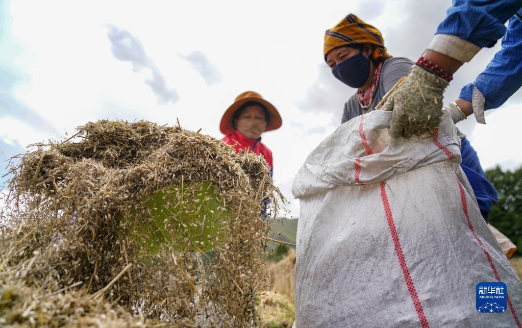當(dāng)前正值青稞收獲季節(jié),拉薩河谷一帶農(nóng)民抓緊收割,農(nóng)田里一片豐收的繁忙景象。