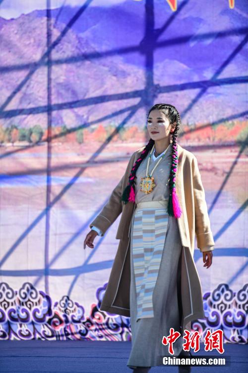 圖為當(dāng)?shù)夭刈迥L厣碇把鹏敳夭肌爆F(xiàn)代藏裝服飾進(jìn)行走秀。貢嘎來松 攝