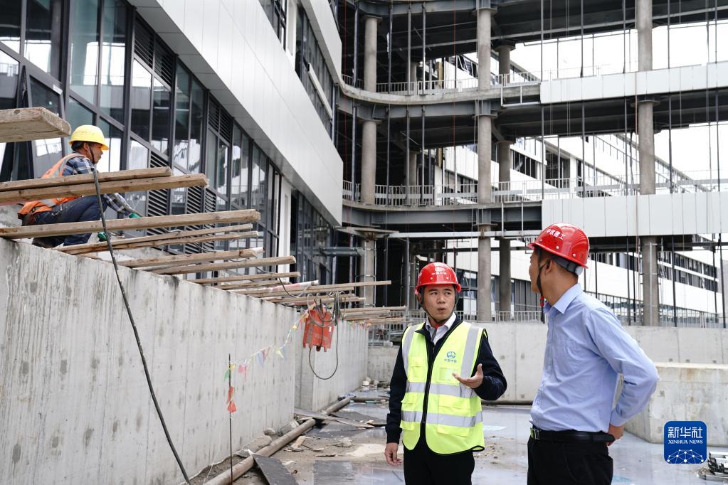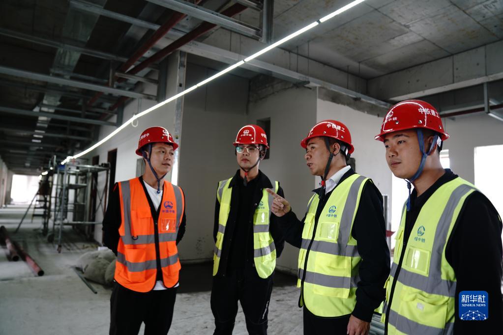 張磊正在查看項(xiàng)目室內(nèi)施工現(xiàn)場(2021年9月18日攝)。新華社記者 劉洪明 攝