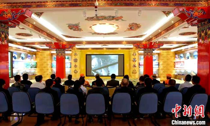 圖為參觀者在西藏自治區(qū)“兩路”精神紀(jì)念館觀看“兩路”宣傳片。西藏自治區(qū)交通運輸廳供圖