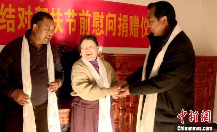 圖為米林家庭農(nóng)場負責人慰問結對幫扶對象。平措旺青供圖