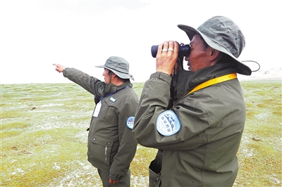 巡護(hù)過程中,他們不僅撿拾垃圾,還時不時用望遠(yuǎn)鏡察看周邊是否有動物死亡、濕地草地是否有被破壞等現(xiàn)象。一旦發(fā)現(xiàn)問題,需及時上報相關(guān)部門。