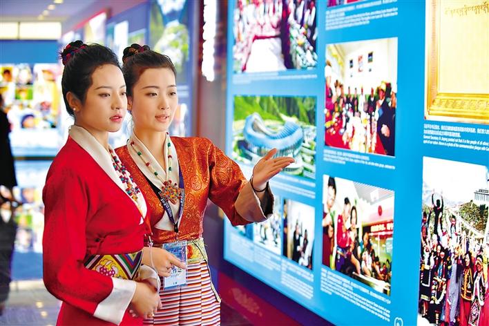 一幅幅精美絕倫的照片、一幀幀生動(dòng)直觀的視頻畫(huà)面、一個(gè)個(gè)獨(dú)特壯觀的實(shí)物模型、一次次活潑有趣的互動(dòng)展示,全面、立體、生動(dòng)地向中外嘉賓展示了西藏和平解放70年來(lái)經(jīng)濟(jì)社會(huì)發(fā)展的歷史性成就,展示了中國(guó)共產(chǎn)黨團(tuán)結(jié)帶領(lǐng)西藏各族人民創(chuàng)造了彪炳千秋、利澤萬(wàn)代、亙古未有的歷史功績(jī)。