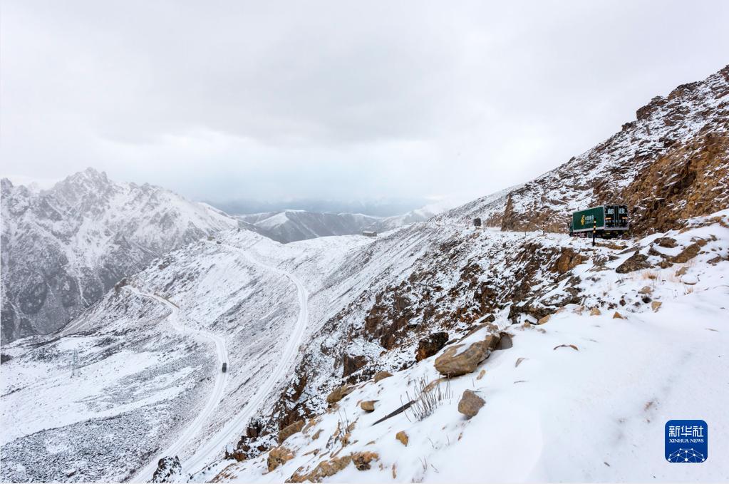 其美多吉與同事駕車行駛在雪線郵路上(資料照片)。其美多吉是中國郵政甘孜縣分公司郵運(yùn)駕駛組的一名郵車司機(jī),往返在甘孜縣與德格縣之間。這段路程是四川省甘孜州綿延5866公里、平均海拔超過3500米的雪線郵路最危險(xiǎn)的一段。新華社發(fā)(周兵 攝)