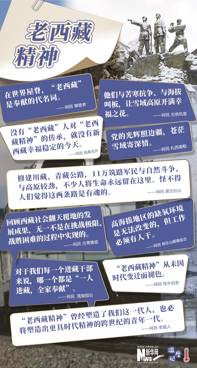 此后的幾十年間,一批又一批、一代又一代援藏干部、駐藏官兵踏上世界屋脊,扎根雪域高原,和當(dāng)?shù)厝罕娨坏?,推?dòng)西藏各項(xiàng)事業(yè)又快又好發(fā)展,讓千年雪域高原變了樣,也賦予“老西藏精神”更為豐富的時(shí)代內(nèi)涵?!吧谶@里很脆弱,生命在這里也很頑強(qiáng)?!本W(wǎng)民們?cè)谏缃黄脚_(tái)上表達(dá)對(duì)雪域高原心向往之的同時(shí),更不忘歌頌歷久彌新的“老西藏精神”。歷經(jīng)時(shí)代的變遷,這種精神正在感召并鼓舞更多人,扎根邊疆,造福西藏,讓那里的山水永遠(yuǎn)碧藍(lán)、綺麗,讓那里的土地永遠(yuǎn)充滿希望、幸福花開。(文字:徐可 海報(bào)設(shè)計(jì):王曄)