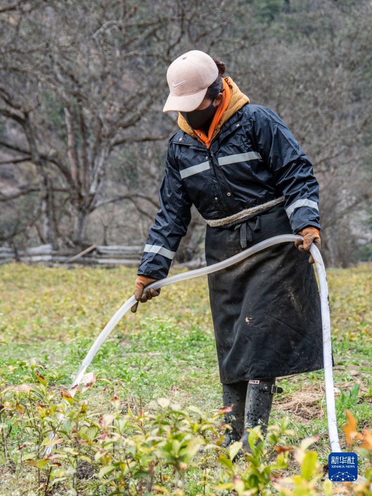 在西藏林芝市波密縣藏芝星農(nóng)業(yè)科技有限公司茶園里,茶田管護(hù)員正忙著給茶樹澆水除草,門口的項(xiàng)目牌上展示著茶樹品種、生長(zhǎng)周期和管護(hù)注意事項(xiàng)?!安鑸@讓我們?cè)黾恿诵碌氖杖??!笨粗F(xiàn)代化的連片茶田,在此工作的古鄉(xiāng)雪瓦卡村32歲的村民索朗措姆由衷感慨。