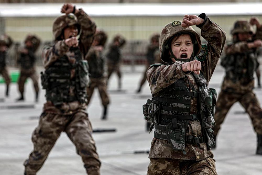 女兵正在進(jìn)行體能訓(xùn)練。 王述東攝