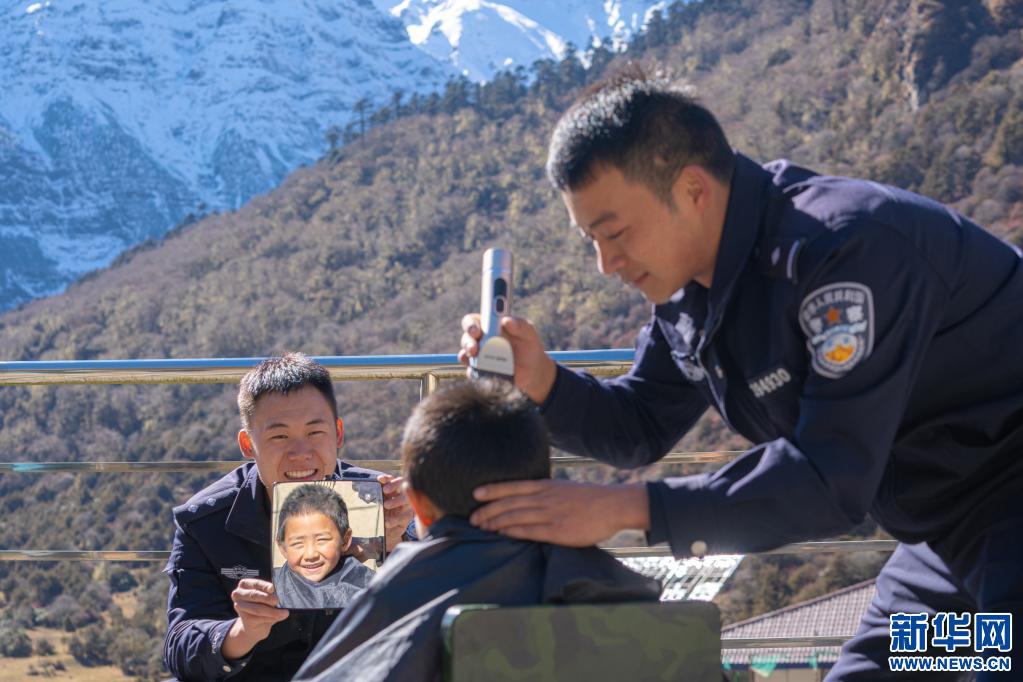 圖為民警為轄區(qū)兒童免費理發(fā)(12月12日攝)。新華社發(fā) (晴雯、彭維熙、劉戀報道)