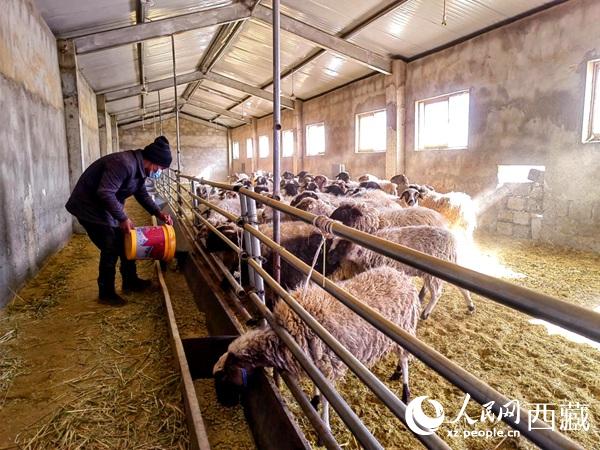 大寒時(shí)節(jié),狂風(fēng)呼嘯。在平均海拔4500多米的西藏日喀則市康馬縣涅如堆鄉(xiāng)藏細(xì)綿羊育肥農(nóng)牧民專(zhuān)業(yè)養(yǎng)殖合作社(簡(jiǎn)稱“合作社”),牧民占堆正忙著給上千只羊投喂飼料。他笑著告訴記者:“自從我們這兒開(kāi)始人工種草后,就建立了合作社,羊統(tǒng)一養(yǎng)在合作社里,冬天再也不用去很遠(yuǎn)的地方放牧了,日子也比以前過(guò)得好了?!?/p>