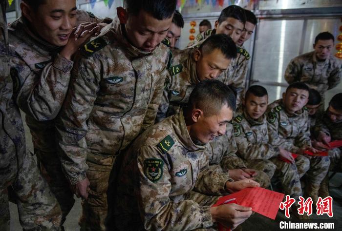 聯(lián)歡的尾聲指導(dǎo)員夏邦國拿著最后的彩袋走到臺(tái)前,把晚會(huì)推向高潮,“兄弟們,這還有一大袋紅包,里面裝著的可是最珍貴的祝?!?。官兵們用抽盲盒的形式拆開新年的“紅包”。中士趙路寬抽到一個(gè)最鼓的,打開是滿滿的糖果;下士吳兵拆開的是一個(gè)帶有小機(jī)關(guān)的新年賀卡;下士鄧云川拆到一封遠(yuǎn)方的匿名信,“雖不曾相見與相識(shí),但知道是你們?cè)谀瑘?jiān)守付出,守衛(wèi)著祖國的雪域邊防”。伴隨著他磕絆的普通話,連隊(duì)官兵漸漸安靜下來。“邊關(guān)有我,請(qǐng)祖國和人民放心”,簡(jiǎn)易投影的大屏上開始播放著官兵們一年多來頂風(fēng)冒雪,戰(zhàn)天斗地的光影片段,在這大山里的多少的苦累酸甜,都已經(jīng)鐫刻在茫茫雪域。